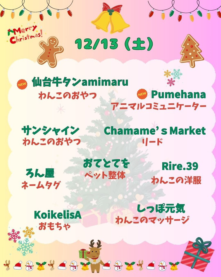 2025.12.08 12月店舗臨時休業&イベント出店のお知らせ 台ヶ森わんわんクリスマスマルシェは2日間開催されますが、当店のイベント出店は14日(日)となります。本年最後のイベント!たくさんの皆様にお会いできるのを楽しみにしております(*^-^*)